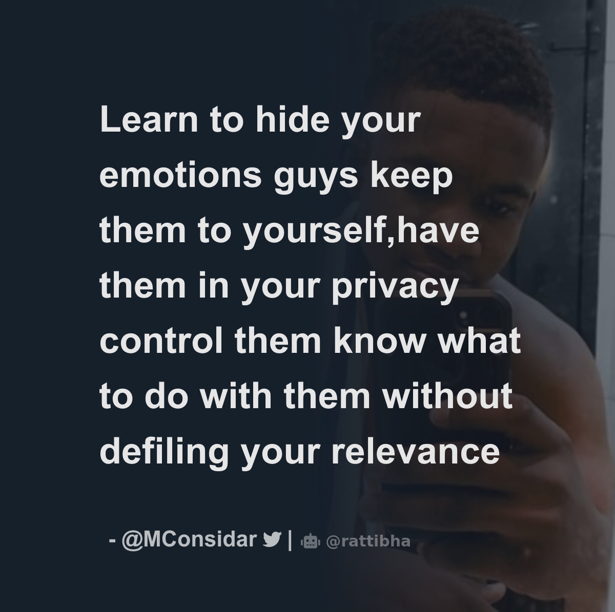 Learn to hide your emotions guys keep them to yourself,have them